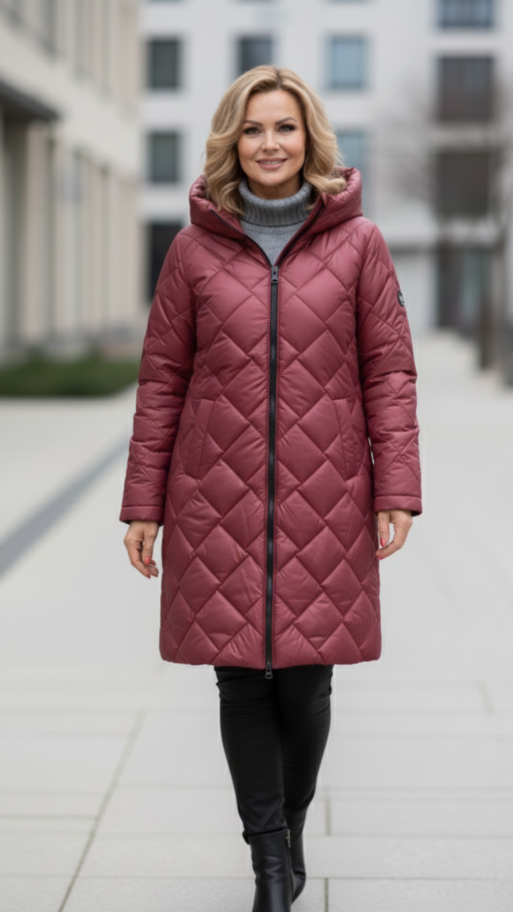 Stylowa, lekko połyskująca kurtka puchowa, która łączy modny wygląd z doskonałym komfortem. Długi fason i wyższy kołnierz zapewniają ochronę przed chłodem, a miękka, termiczna tkanina gwarantuje przyjemne ciepło nawet w najzimniejsze dni. Idealna na spacery, zakupy i codzienne wyjścia w chłodniejszych miesiącach.