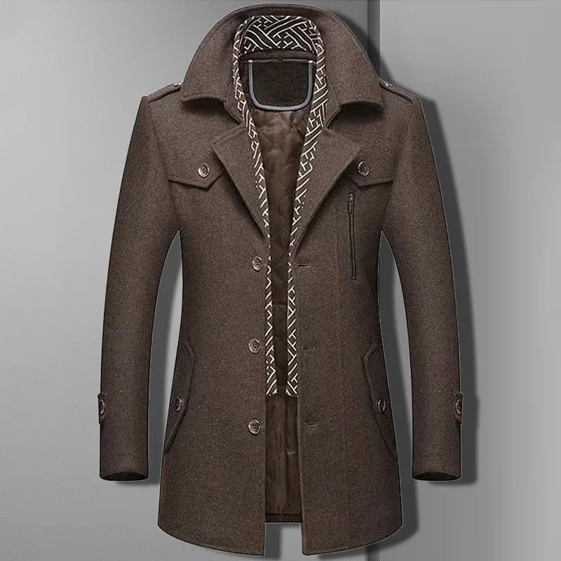 Męski Płaszcz – Ocieplany z Kołnierzem Szalowym