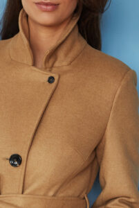 *płaszcz uszyty z kaszmiru i wełny dziewiczej pochodzącej z pierwszego strzyżenia jagnięcia (najlepsza wełna). Dzięki temu jest lekki, ale ciepły.